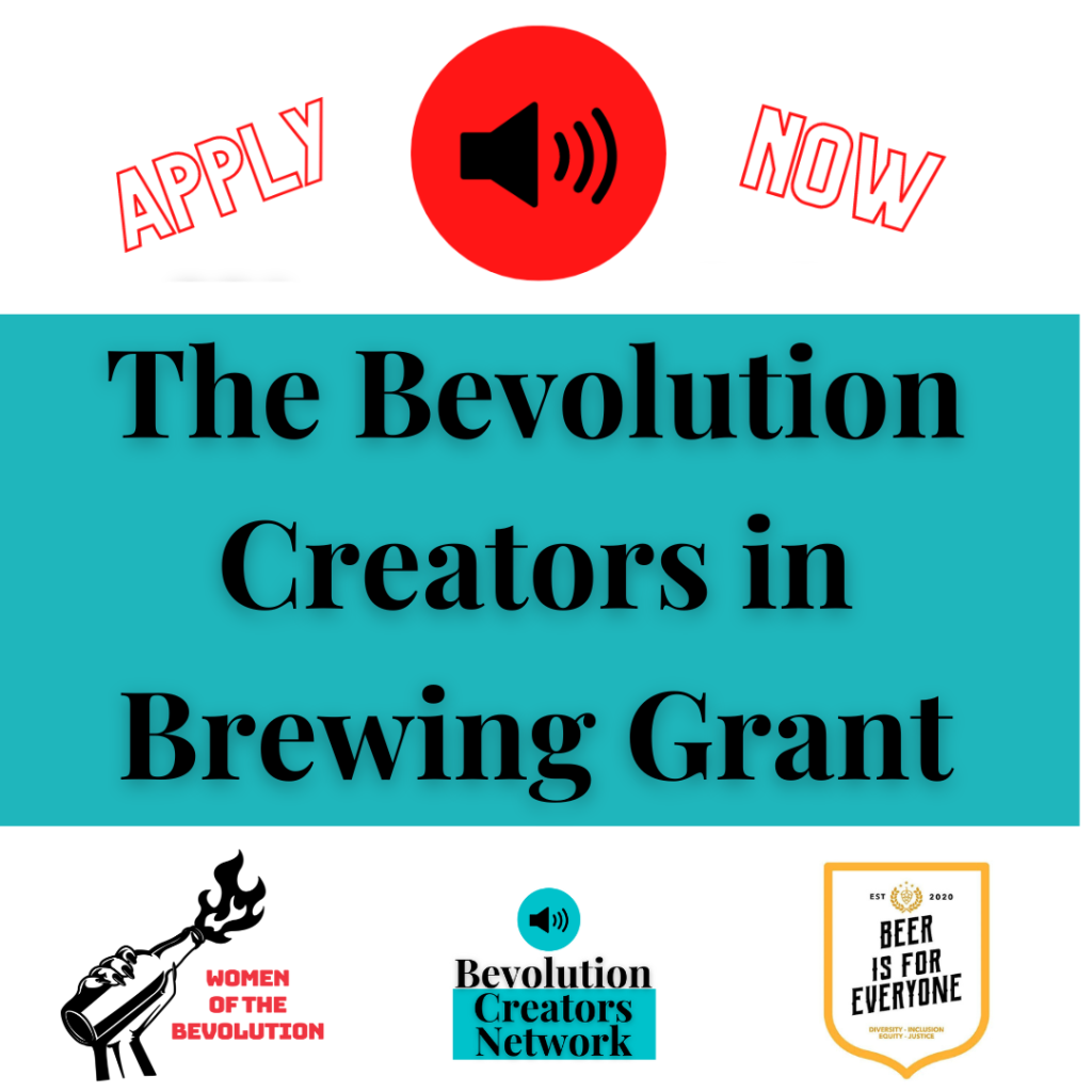 CREATORS! Women of the Bevolution and Beer is for Everyone have teamed up to launch a grant program for women and non-binary entrepreneurs, digital creators, brewers, and homebrewers who identify as an underrepresented or underserved member of the craft beverage community including, but not limited to, Black, African American, Indigenous, Asian American, Pacific Islander, or other Person of Color, who are looking for help in getting started on creating content, developing a brand or releasing a product – whether it’s launching a podcast, merch line or a product, or editing YouTube video tutorials, Reels, TikToks or starting a Substack/newsletter, blog or Patreon.